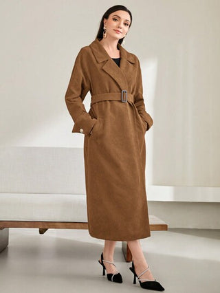 Modelyn معطف طية صدر السترة بلون خالص للسيدات
