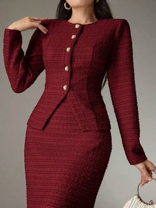 Modelyn 2 مجموعة لباس نسائي أنيق لون واحد، جاكيت وتنورة ذيل حورية البحر، مجموعة قطعتين للخريف