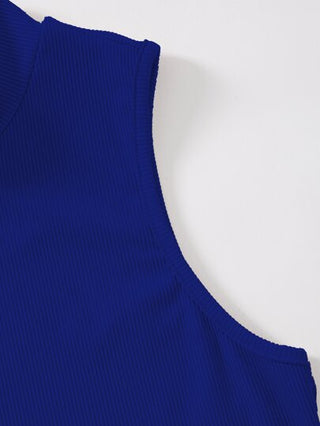 MOOSTA لباس علوي تانك محبوك مضلع وبلون موحد