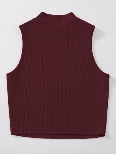 MOOSTA لباس علوي تانك محبوك مضلع وبياقة دائري