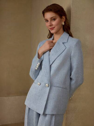 MOTF PREMIUM بدلة بلوزر مزدوجة الصدر مزخرفة بالخرز الاصطناعي