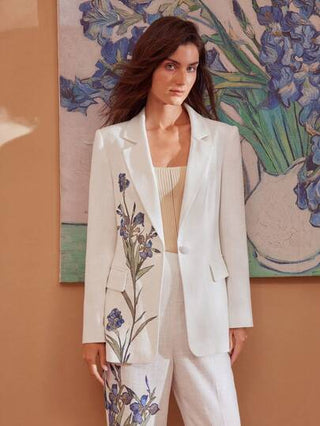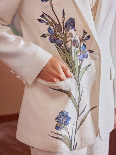 MOTF PREMIUM سترة بطية ياقة مطبوعة بنمط زهري من الكتان