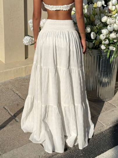 Muchica تنورة نسائية بخصر ملتوي، بتصميم مجعد الحافة لون أحادي