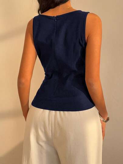 Muchica ملابس علوية صيفي أنيق بلا أكمام ذو تصميم بسيط وبدون أنماط