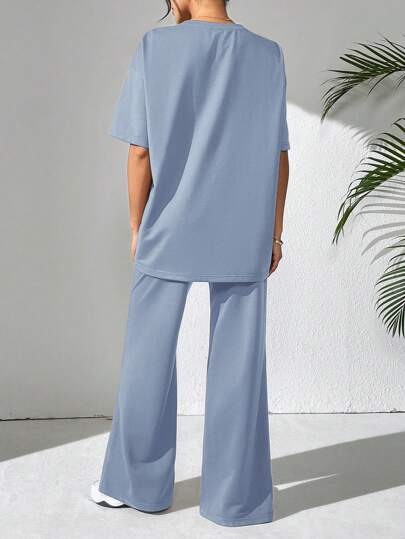 Mulvari العيد مجموعة قطعتين لنساء الصيف، بلوزة طباعة شعار وأكتاف متدلية مع بنطلون كاجوال، بدلة رياضية كاجوال قطعتين للراحة، مناسبة للمشي والرياضة وارتداء اليوم العادي والعودة للمدرسة