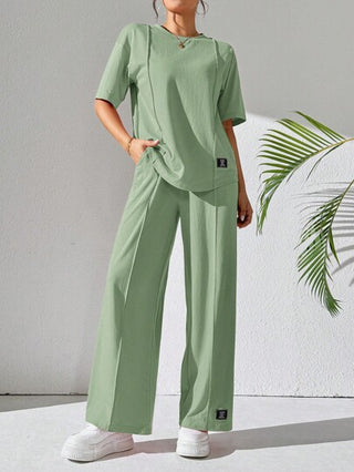 Mulvari العيد مجموعة ملابس علوية وبنطلون بلون واحد للنساء بأكمام طويلة وياقة عالية، بدلة رياضية كاجوال، مناسبة للمشي والرياضة والعودة إلى المدرسة والارتداء اليومي 2 قطع