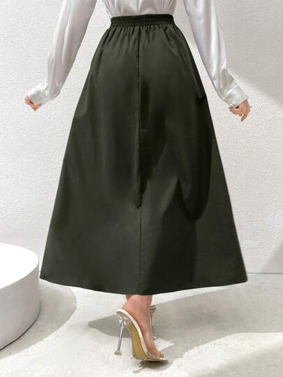 Mulvari تنورة ماكسي طويلة أنيقة بجيب, ملابس نسائية