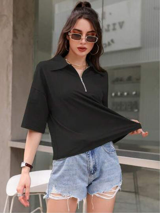 Mulvari تي شيرت منخفض الاكتاف سحاب نصف