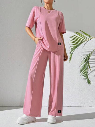Mulvari مجموعة من قطعتين للنساء تتكون من ملابس علوية أكمام طويلة ذات رقبة طاقم بلون أحادي والبنطلون ، ملابس كاجوال يومية ، بدلة رياضية مريحة مكونة من قطعتين مناسبة للمشي والرياضة والرجوع للمدرسة والارتداء اليومي العادي