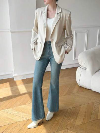 Mulvari بليزر لفصل الخريف مناسب للنساء لارتداء اليومي والتنقل ذو تصميم يجمع التقليم والخطوط