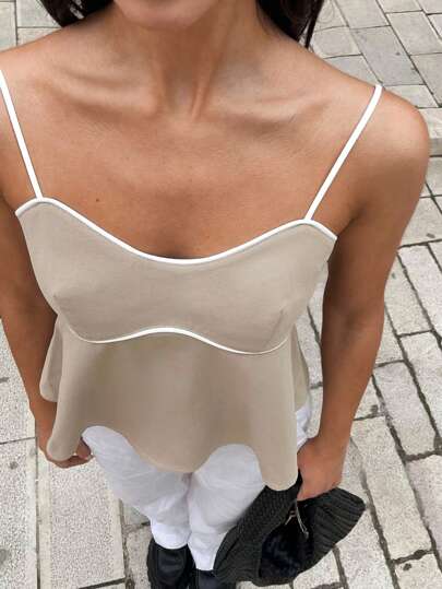 Muvela توب كاجوال مفرغ الأكمام، بتصميم حافة بخياطة، ملابس علوية كاجوال فضفاضة، ملابس صيفية جميلة للسيدات