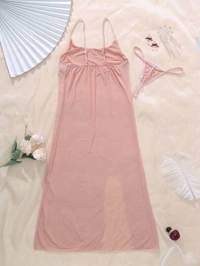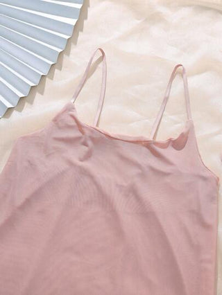 Ning xue yan ying فستان شفاف بحمالات رفيعة وفتحات جانبية وظهر مفتوح ذو رقبة على شكل حرف يو مصنوع من شبكة قطعتين، أزياء داخلية رومانسية