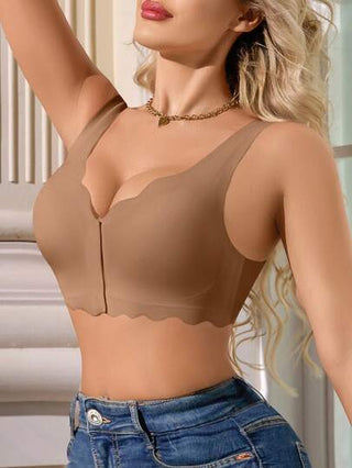 NudeFit زرار أمامي مريح وبدون خياطة سوليد كاجوال للنساء، بدون أسلاك