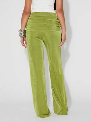 NYA SZN سروال خصر قابل للطي واسع الساق مصنوع من صوف شبكي، مناسب للاسترخاء في العطلات الصيفية والأنشطة الشاطئية، تصميم مريح وجذاب للنساء