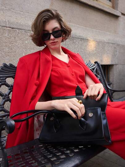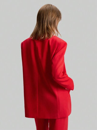 Ontre بليزر أنيق بياقة مفندة مزين بأزرار للربيع/رأس السنة الجديدة بطراز 90s للنساء باللون الأحمر