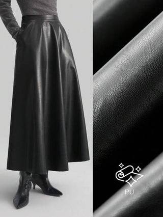 Ontre تنورة من جلد البولي يوريثان بخصر مطاطي أنيقة وعملية بخط A لنساء للخروج، موديل ربيعي، ملابس رمضان 2025