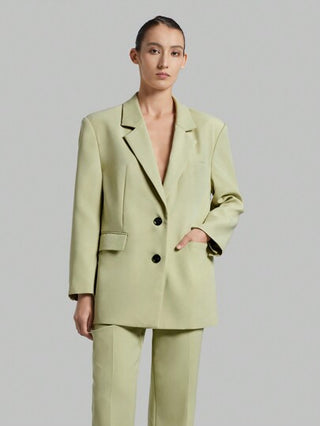 Ontre سترة نسائية صلبة بطية الياقة وتصميم كم طويل مفتوحة من الأمام بأزرار واحدة