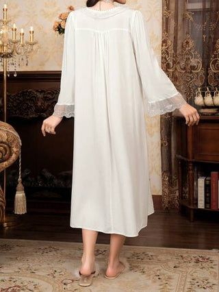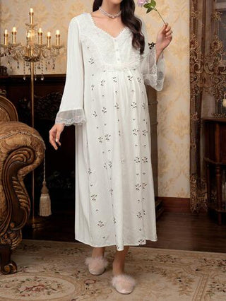 PalaceNights ثوب نوم للحمل من النوع الفضفاض طويل الأكمام ذو ياقة على شكل حرف V مطرز بنقوش زهرية بطراز قصور عتيق ثلاثي الأبعاد