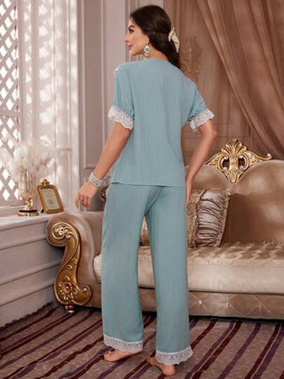 PalaceNights طقم نوم نسائي مجموعة بيجاما بذيل من الدانتيل ومطوية بأمواج