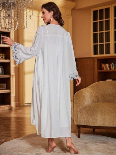 PalaceNights مجموعة بيجامة تتكون من فستان نوم بتطريز وروب أبيض