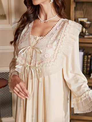 PalaceNights مجموعة ملابس نوم نسائية بطراز لباس القصر القديم مزينة بالتطريز والدانتيل