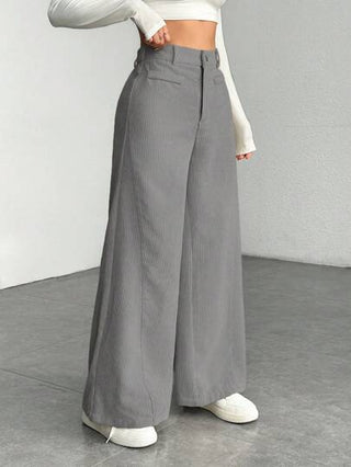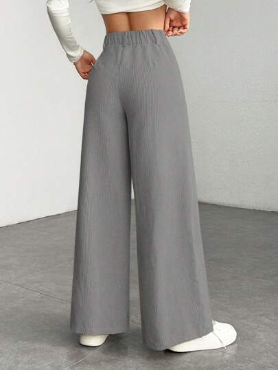 PETITE بنطال قياس عالي الخصر واسع الساق بلون قياسي متعدد الاستخدامات