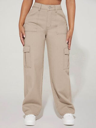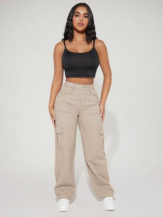 PETITE بنطلون جينز كارجو خصر عالي جيب جانبي قلاب