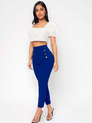 PETITE بنطلون خصر عالي صف ازرار مزدوجة مشدود مقصوص