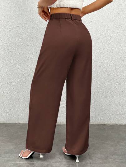 PETITE بنطلون كاجوال أنيق بلون واحد للنساء
