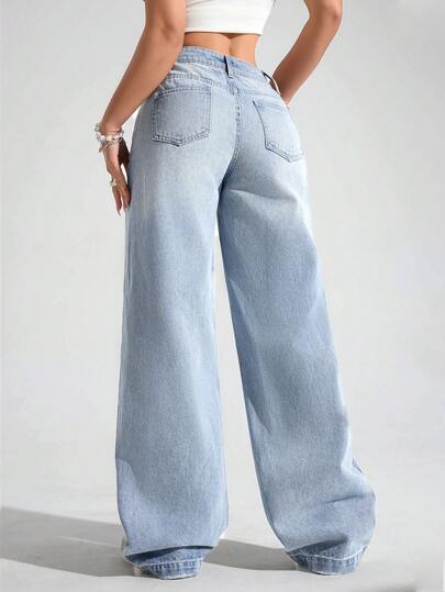 PETITE بنطلون نسائي جينز طويل، عصري للصيف