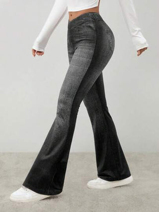 PETITE بنطلون نسائي ملفوف على الخصر وذو طيات خفيفة، جيوب أنيقة، بخصر طبيعي وواسع، بنطلون داكن للنساء