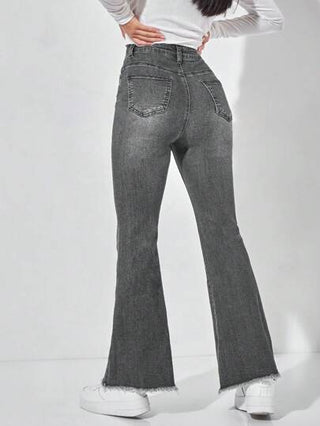 PETITE بنطلون نسائي منسوج بقصة واسعة و حاشية متمزقة مصبوغ بالدنيم