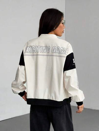 PETITE جاكيت بومبر بألوان متباينة مطبوع عليها حرف للملابس الجديدة لعام الجديد