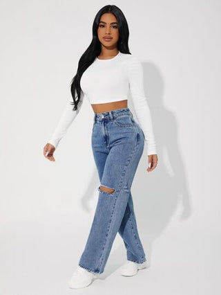 PETITE جينز بساق مستقيم خصر عالي قص مجوف