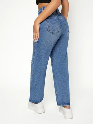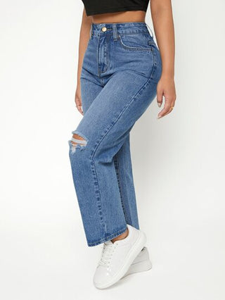 PETITE جينز بساق مستقيم خصر عالي ممزق