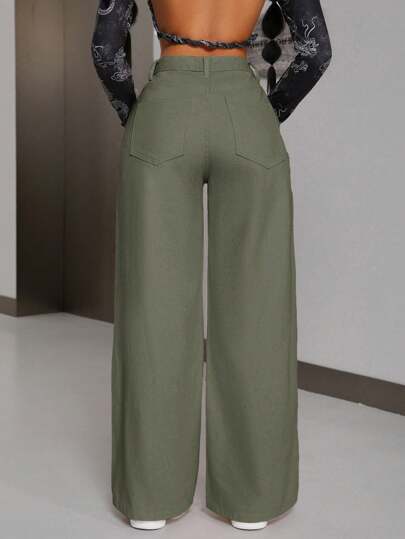 PETITE جينز نسائي بقصة واسعة وبشكل عشوائي مع أطراف مفتولة