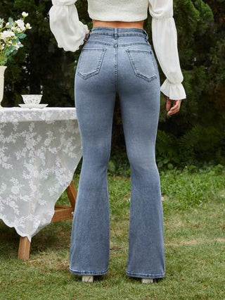 PETITE جينز نسائي ذو جيوب مائلة وتصميم واسع بلون سادة