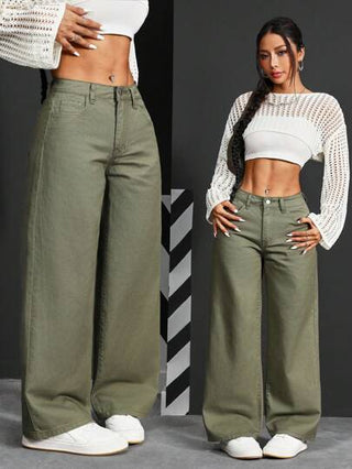 PETITE سراويل جينز نسائية بفتحات واسعة مع جيوب بموديل واسع