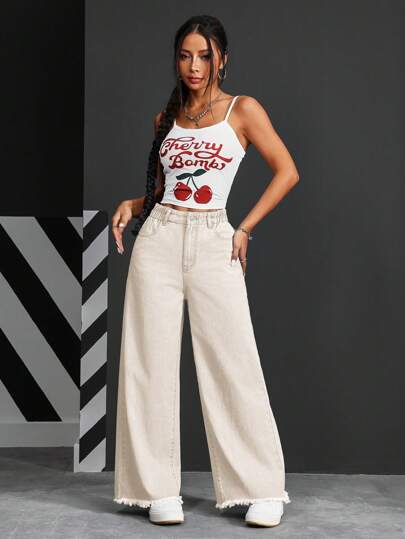 PETITE سراويل جينز نسائية بلون سادة، فتحة قصيرة، ملاءمة عادية للاستخدام اليومي