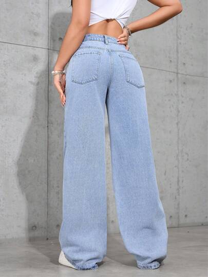PETITE سراويل جينز نسائية فضفاضة وواسعة الساق متعددة الاستخدامات