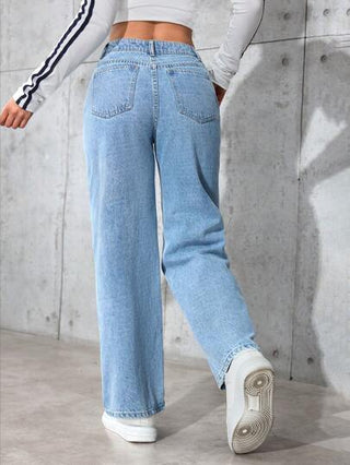PETITE سراويل جينز نسائية مستقيمة الساق فضفاضة غير رسمية متعددة الاستخدامات مع جيوب
