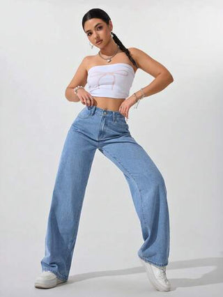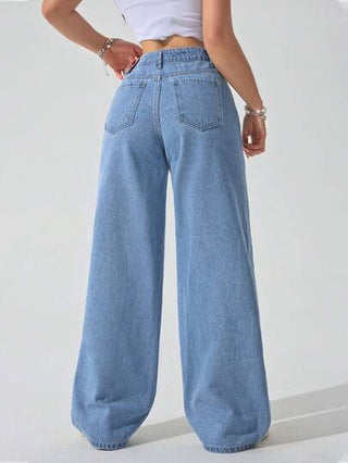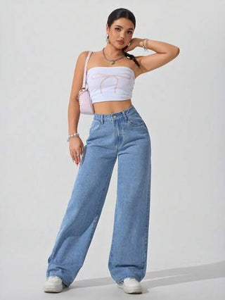 PETITE سراويل جينز نسائية بفتحات جانبية بقصة فضفاضة وساق واسعة، متعددة الاستخدامات