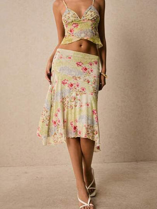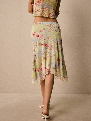 Poéselle تنورة أزهار عطلة نسائية مع حاشية غير متماثلة للموضة