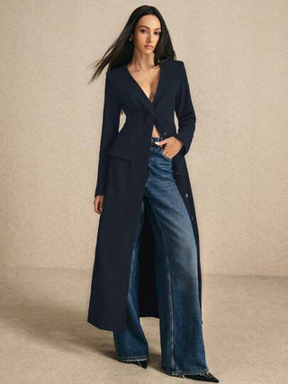 Poéselle معطف نسائي طويل من سترة أحادية الصدر بأكمام طويلة وياقة سترة، معطف نسائي طويل، معطف نسائي ترنش، معطف طويل، ملابس نسائية خريفية، ملابس نسائية شتوية، ملابس نسائية ليوم الهالوين