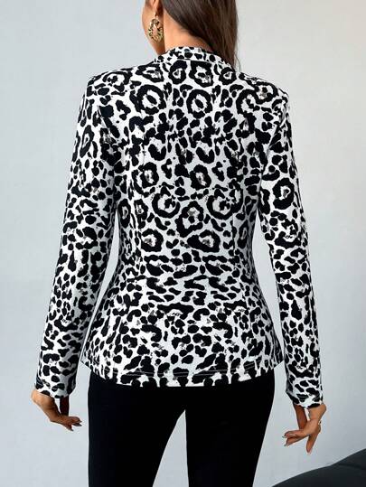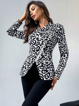 Privé معطف أنثوي بأكمام طويلة بطبعة نمر، سحاب معدني مائل، قياس عادي