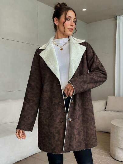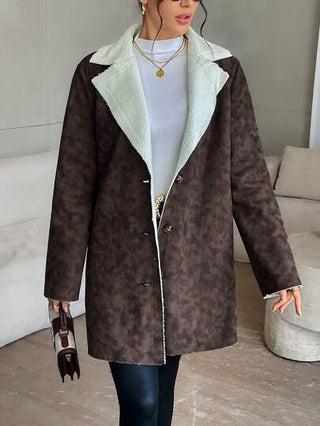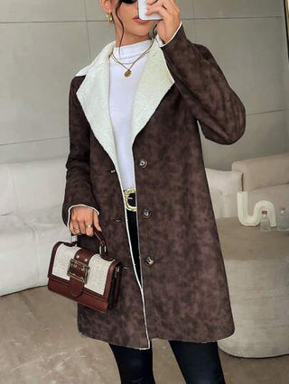 Privé معطف شتوي للنساء مزود بياقة قلابة وأكمام طويلة وأزرار أمام من البولي يوريثان ومبطن للدفئ