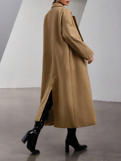 Privé معطف فاخر من خصر مزدوج مع تطريز و قواقع متباينة اللون يمكن فصلها