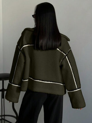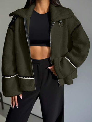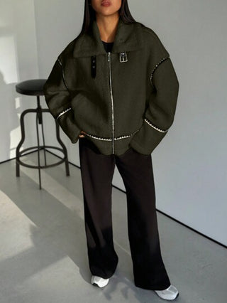 Privé جاكيت الدبدوب الكاجوال الأنيقة الدافئة اللون البيج الفاتح للخريف/الشتاء