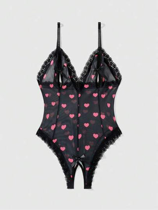 لانجيري حريمي ROMWE Kawaii بوديسوت سيكسي بتصميم رائع بقطع دانتيل وشكل الشريطة والعقدة المزخرفة وقلب مفرغ رومانسي