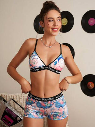 Rick and Morty X مجموعة ملابس داخلية نسائية بليزر وسروال بحزمة شرائط مطبوعة بأشكال رسومات كرتونية